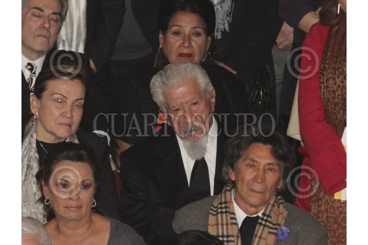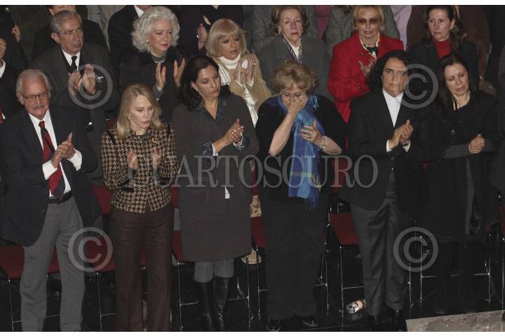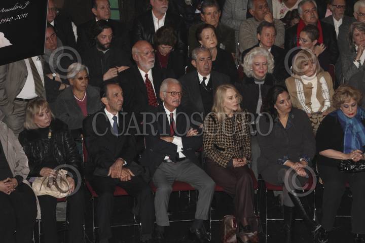 MÉXICO, D.F., 09ENERO2012.- Manuel Arango, Carlos Fuentes, Silvia Lemus, Silvia Pinal, Consuelo Saizar y Maria Rojo, durante el homenaje póstumo a Pedro Armendariz en el Palacio de Bellas Artes. FOTO: SAÙL LÒPEZ/CUARTOSCURO.COM