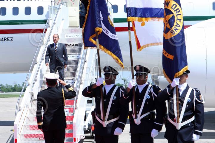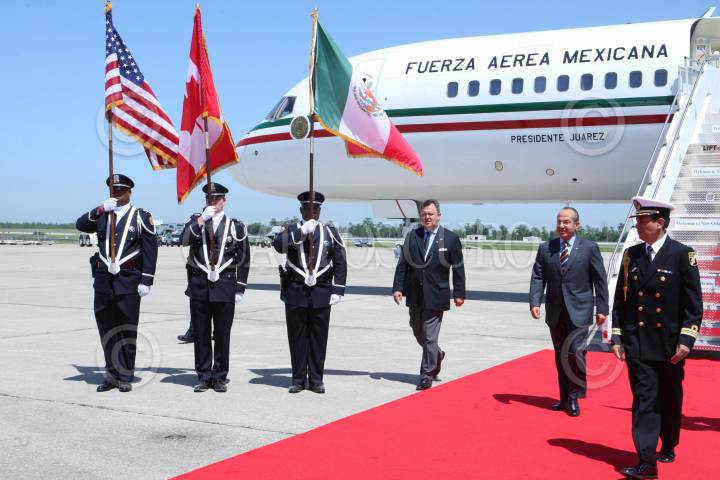 NUEVA ORLEANS, LUISIANA, 21ABRIL2008.- El presidente de México, Felipe Calderón Hinojosa, a su arribo al aeropuerto internacional Luis Armstrong de ésta ciudad para una gira de trabajo. FOTO: ALFREDO GUERRERO/CUARTOSCURO.COM