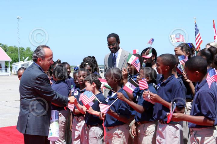NUEVA ORLEANS, LUISIANA, 21ABRIL2008.- El presidente de México, Felipe Calderón Hinojosa, a su arribo al aeropuerto internacional Luis Armstrong de ésta ciudad para una gira de trabajo. En l aimagen el presidente de México saluda a niños que lo recibieron a su llegada a dicho pais. FOTO: ALFREDO GUERRERO/CUARTOSCURO.COM
