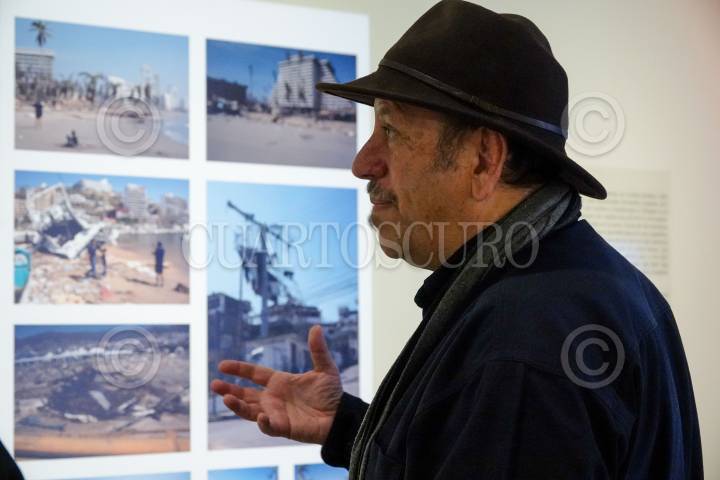 CIUDAD DE MÉXICO, 08NOVIEMBRE2024.- Un representante de la prensa observa las fotografías pertenecientes a la exposición “Laboratorio Acapulco” que formará parte del festival de arquitectura MEXTRÓPOLI. La muestra aborda una visión crítica y propositiva sobre la situación actual del puerto a un año del paso del huracán Otis. FOTO: GALO CAÑAS/CUARTOSCURO.COM