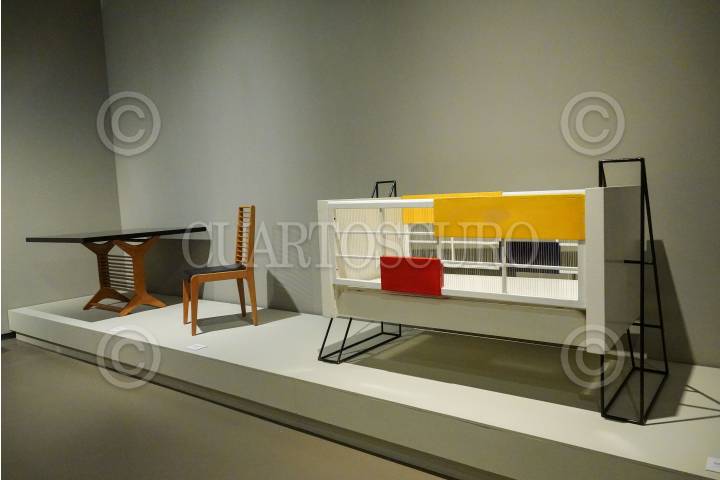 CIUDAD DE MÉXICO, 08NOVIEMBRE2024.- Aspectos de muebles expuestos en el Colegio de San Ildefonso que integran la muestra “Homenaje a los 100 años de Abraham Zabludovsky”. El recorrido compila los planos, maquetas, fotografías, bocetos y los resultados que el arquitecto mexicano con ascendencia judío-polaca reunió a lo largo de su trayectoria profesional y que será parte del festival sobre arquitectura MEXTRÓPOLI. FOTO: GALO CAÑAS/CUARTOSCURO.COM