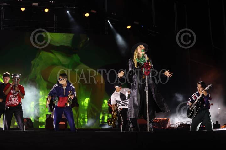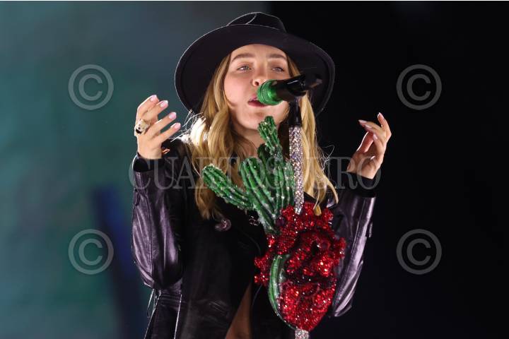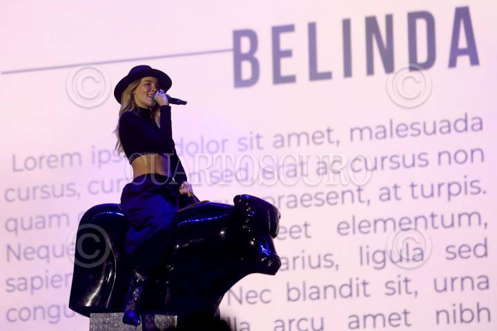 CIUDAD DE MÉXICO, 07SEPTIEMBRE2024. Beli Belica (Belinda) durante su presentación en la segunda edición del “Festival Arre”, donde se presentan músicos exponentes del regional mexicano, en la curva 4 del Autódromo Hermanos Rodríguez. FOTO: EDGAR NEGRETE LIRA/CUARTOSCURO.COM