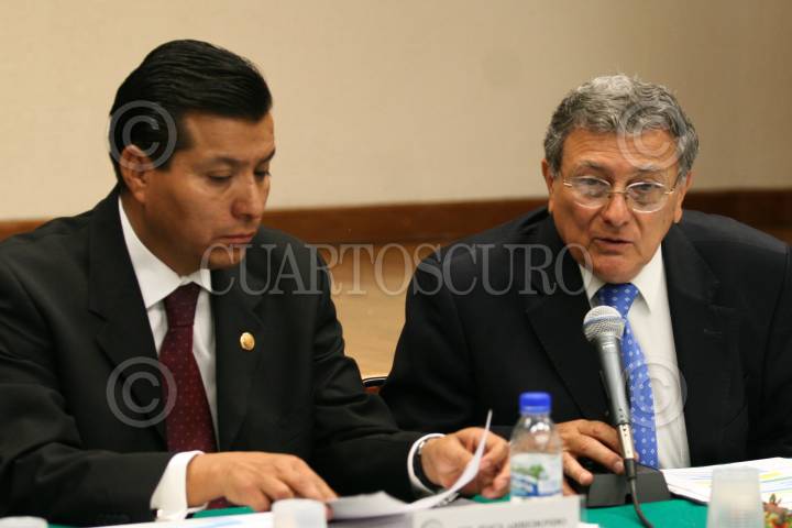 MÉXICO D.F. 12SEPTIEMBRE2007.-Los diputados Jesús Arredondo Velázquez y Marco Antinio Peyrot Solís, durante la reunión plenaria de la Comisión de la Defensa Nacional, en las instalaciones de la Cámara de Diputados. FOTO: GUILLERMO PEREA/CUARTOSCURO.COM
