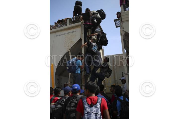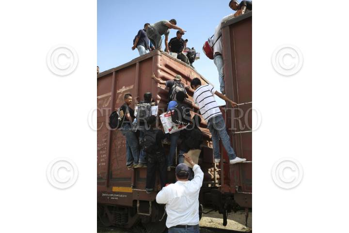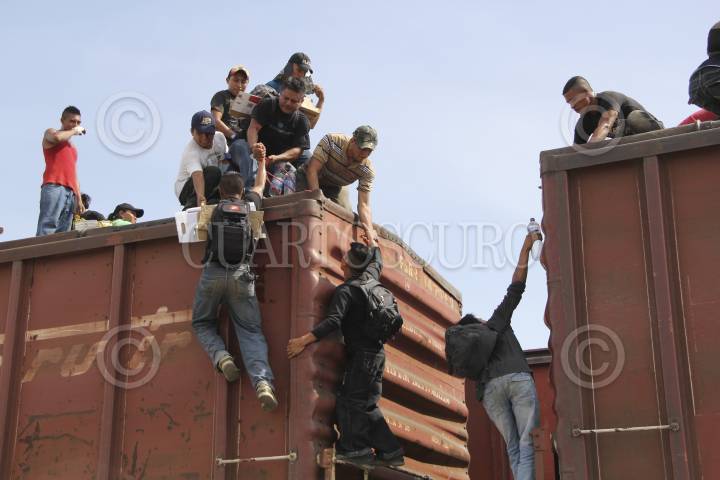 ARRIAGA, CHIAPAS, 16JULIO2014.- Cientos de migrantes, abordan el tren en la estación de Arriaga con destino a la frontera norte del país. FOTO: ENRIQUE ORDÓÑEZ /CUARTOSCURO.COM