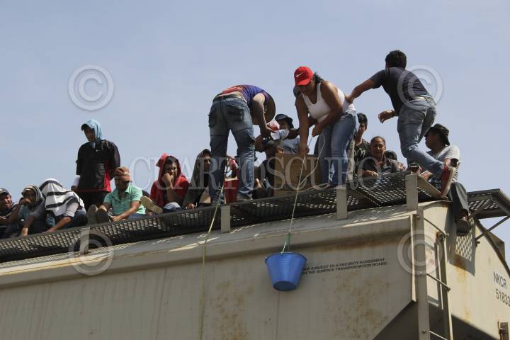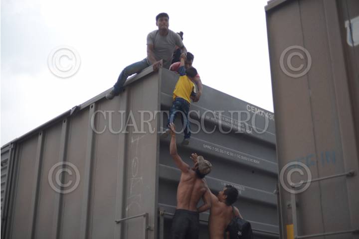 ARRIAGA, CHIAPAS, 16JULIO2014.- Cientos de migrantes principalmente de Centroamerica como Honduras, El Salvador y Guatemala, abordan el tren de carga con el que esperan llegar al norte del país para alcanzar el sueño americano, a pesar del anunció del Gobierno de México para impedir que los migrantes aborden el tren. FOTO: ELIZABETH RUIZ /CUARTOSCURO.COM