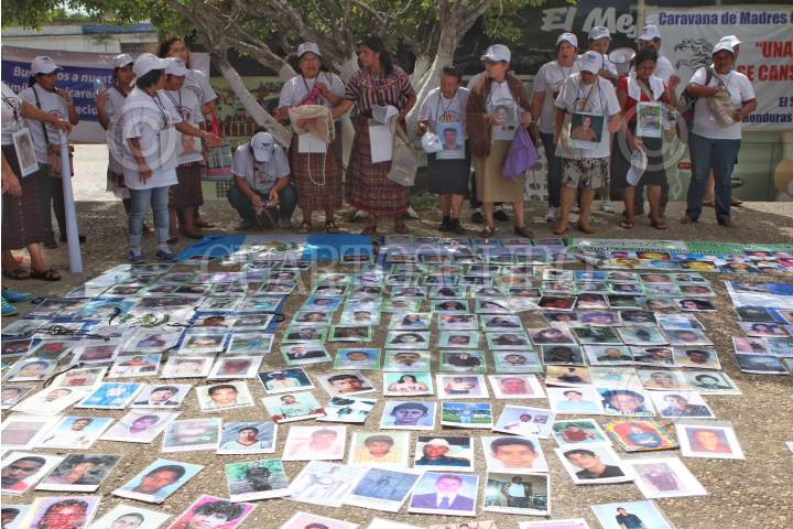 ARRAIGA, CHIAPAS, 14DICIEMBRE2015.- Madres de migrantes centroamericanos continúan con su búsqueda por el territorio nacional de sus hijos, al medio día montaron un mitin con retratos de sus seres queridos en la Plaza Central para que los paseantes observarán los rostros y buscar información sobre su paradero. FOTO: MOISÉS PABLO /CUARTOCURO.COM