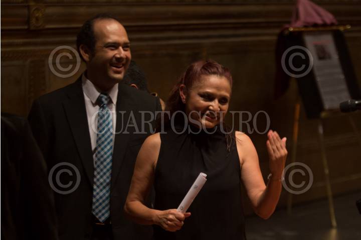 CIUDAD DE MÉXICO, 15JULIO2017.- Lidia Camacho, directora general del Instituto Nacional de Bellas Artes, y Mauricio Leyva, secretario de cultura del estado de Guerrero, develaron una placa para conemorar el trigesimo quinto aniversario dela compañia de artes escenidas Barro Rojo, originaria de Chilpancingo FOTO: TERCERO DÍAZ /CUARTOSCURO.COM