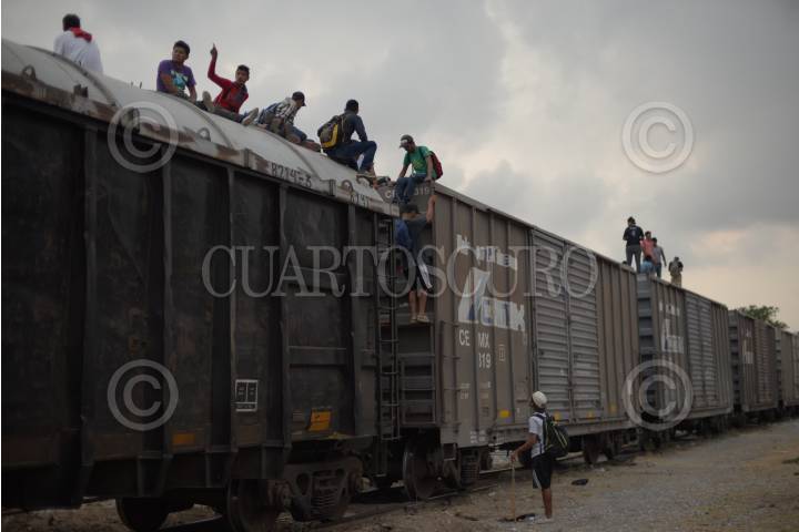 ARRIAGA, CHIAPAS, 02MAYO2019.- En la estación de trenes al menos ochenta migrantes esperan la salida del tren que recorrerá 153 kilómetros hasta llegar a Ixtepec, Oaxaca. El tren en este tramo viaja a una velocidad aproximada de 18 km/h debido a las malas condiciones de las vías. Los migrantes arriesgan su vida en estos trayectos con la esperanza de llegar a la frontera norte del país e intentar entrar a Estados Unidos. FOTO: ISABEL MATEOS /CUARTOSCURO.COM