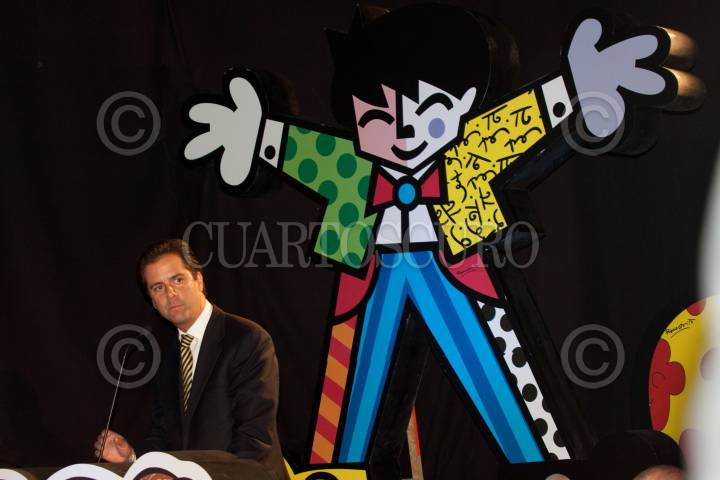MÉXICO, D.F., 08NOVIEMBRE2010.- Javier Arrigunaga, director general de Banamex, ofreció un mensaje a los medios de comunicación y a los presentes durante el anuncio del lanzamiento del proyecto "Romero BrittoTeletón 2010", donde el artista plástico brasileño Romero britto crea la imagen para el Teletón 2010 que se realizará el próximo 3 y 4 de diciembre. FOTO: MISAEL VALTIERRA/CUARTOSCURO.COM