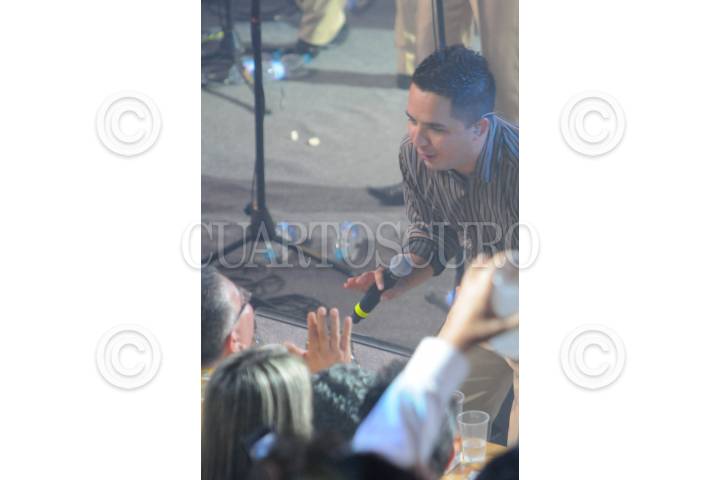 TEXCOCO, ESTADO DE MEXICO, 22ABRIL2011.- Jorge Medina vocalista de la Arrolladora Banda El Limón, ayer durante la actuación que ofrecieron en el Palenque de la XXX Feria del Caballo en Texcoco. FOTO: FRANCISCO RODRIGUEZ/CUARTOSCURO.COM