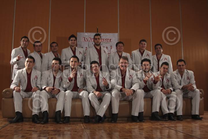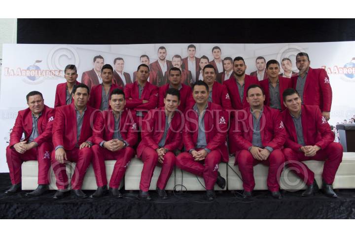 MÉXICO, D.F., 26ENERO2012.- El grupo musical, La Arrolladora Banda Limón, posó para los fotógrafos durante la conferencia de prensa donde presentaron su nueva producción musical titulada “Llamada De Mi Ex”. FOTO: ENRIQUE ORDÓÑEZ/CUARTOSCURO.COM