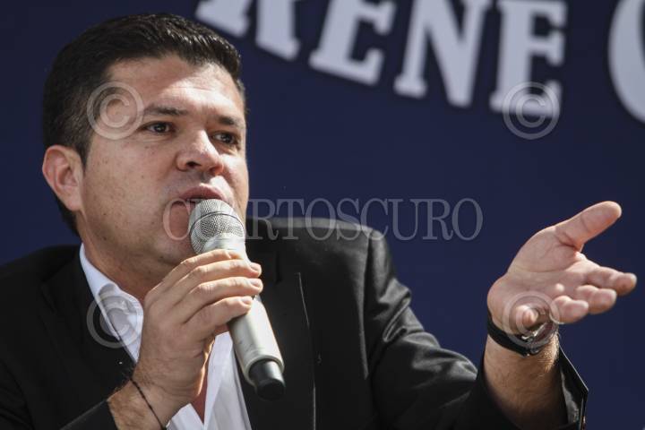 MÉXICO, D.F., 26ENERO2012.- René Camacho, Líder de La Arrolladora Banda Limón, durante la conferencia de prensa donde presentaron su nueva producción musical titulada “Llamada De Mi Ex”. FOTO: ENRIQUE ORDÓÑEZ/CUARTOSCURO.COM