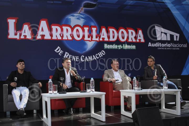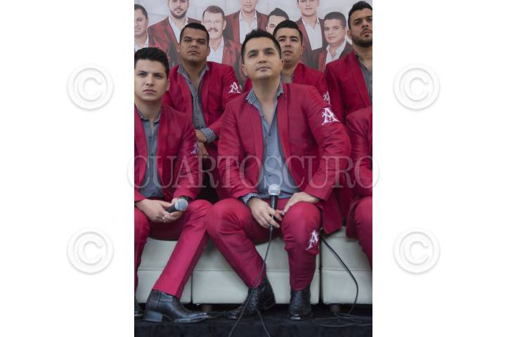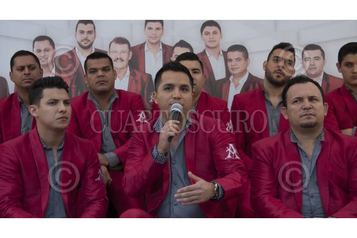 MÉXICO, D.F., 15DICIEMBRE2015.- La Arrolladora Banda el Limón de Rene Camacho en conferencia de prensa anunciaron que los próximos 15 y 16 de enero del siguiente año se presentaran en el Auditorio Nacional con sorpresas para su público con la participación de diferentes invitados y material discográfico nuevo. FOTO: ISABEL MATEOS /CUARTOSCURO.COM