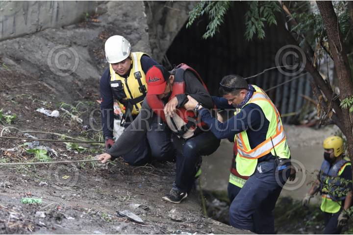 Dos hombres que lavaban su ropa a la orilla del Arroyo Ceballos, fueron arrastrados por la corriente, uno de ellos logró salir pero su otro amigo se quedó atrapado, luego de casi 2 horas de labores de rescate, elementos de Bomberos lograron rescatar a la persona sana y salva.