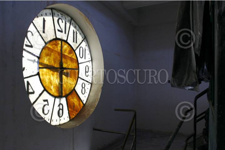 SAN LUIS POTOSÍ, SLP.- La antigua estación de trenes del estado ha cerrado sus puertas pues se planea la construcción de un museo para el año 2008. El edificio Art Decó alberga en una torre un reloj monumental descompuesto. FOTO: PAOLA HIDALGO/CUARTOSCURO.COM