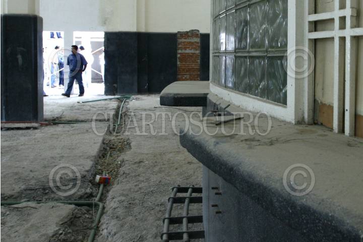 SAN LUIS POTOSÍ, SLP.- La antigua estación de trenes del estado ha cerrado sus puertas pues se planea la construcción de un museo para el año 2008. Las taquillas, ahora desiertas estuvieron en funcionamiento durante casi un siglo. FOTO: PAOLA HIDALGO/CUARTOSCURO.COM