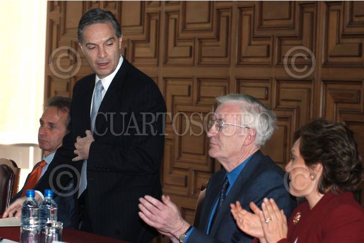 México D.F, 10FEB2004.- Germano Stranieros representante de la Unión Europea , Luis Ernesto Derbez, secretario de Relaciones Exteriores y Art Id Agnew embajador de Irlanda durante la firma de un acuerdo de Derechos Humnos. FOTO: Germán Romero/CUARTOSCURO.COM