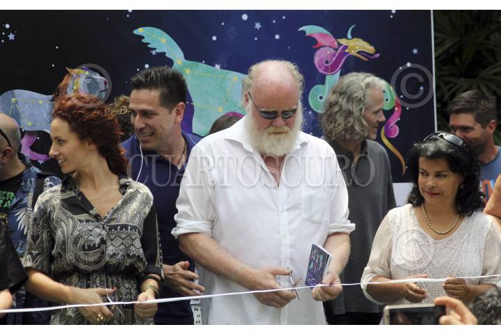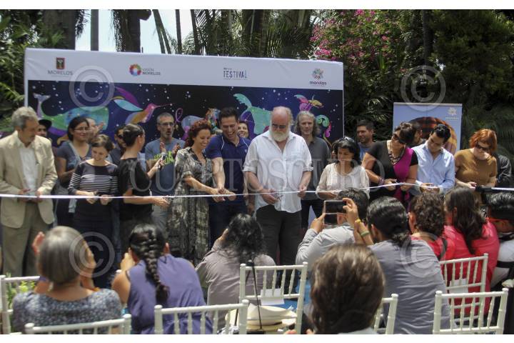 CUERNAVACA, MORELOS, 09SEPTIEMBRE2015.- José Iñesta, director del Festival Pixelatl 2015, acompañado de autoridades estatales y expositores de diferentes nacionalidades como Phil Tippett, animador stop motion, artista de VFX y ganador de dos premios Oscar, participaron en la Inauguración del festival en la sede de este año "Las Mañanitas Casanueva". FOTO: PATRICIA MORALES / CUARTOSCURO.COM