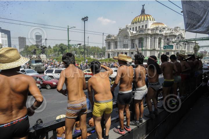 MÉXICO, D.F., 22ABRIL2015.- Se manifiestan indígenas, integrantes de los 400 pueblos en Bellas Artes. Esto en protesta por conseguir una respuesta del gobierno para solucionar problemas que se les han venido presentando por mucho tiempo atrás. FOTO: ARMANDO MONROY /CUARTOSCURO.COM