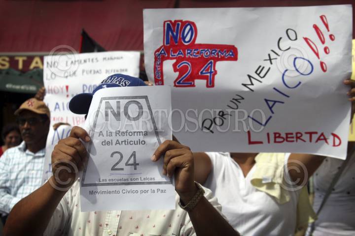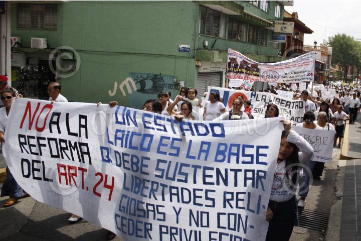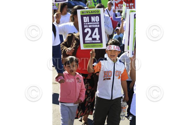 VERACRUZ, VERACRUZ, 01FEBRERO2012.- Un aproximado de 250 ciudadanos de diversos municipios, pertenecientes a diferentes grupos religiosos, marcharon sobre las principales calles del puerto para exigir el freno a la reforma del Artículo 24 Constitucional. FOTO: FÉLIX MÁRQUEZ/CUARTOSCURO.COM