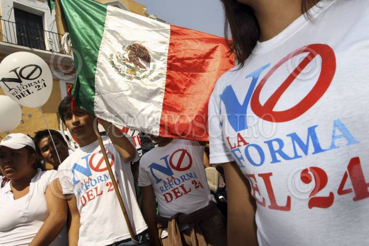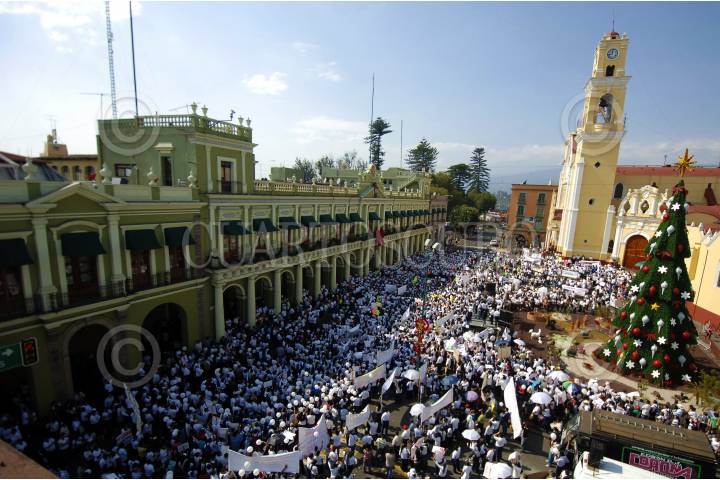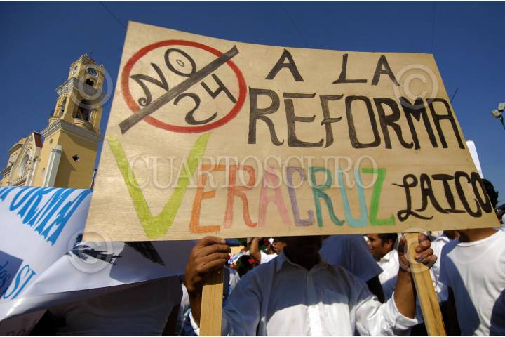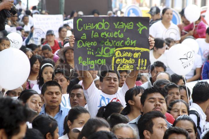 XALAPA, VERACRUZ., 20DICIEMBRE2012.- Esta mañana integrantes de la Asociación Civil "Veracruz Laico", marcharon desde el parque de los berros hasta palacio de gobierno para pedir la intervención del gobernador Javier Duarte de Ochoa ante el congreso del estado ante la probable aprobación de la Reforma al artículo 24 Constitucional. FOTO: TONA NAVARRO/CUARTOSCURO.COM