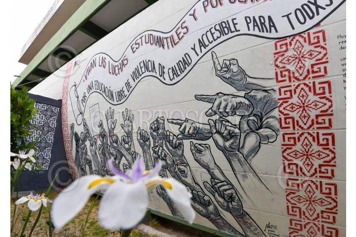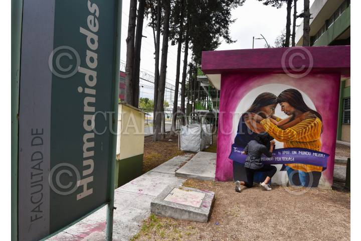 Artistas plásticos realizan murales en la Facultad de Humanidades de la UAEM la cual continúa en paro de labores académicas, después de darse una serie de denuncias por acoso por parte de profesores y alumnos.