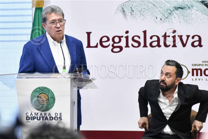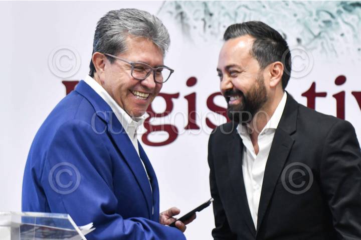 CIUDAD DE MÉXICO, 29MAYO2025.- Ricardo Monreal, diputado y coordinador del grupo parlamentario de Morena en la Cámara de Diputados, junto a Arturo Ávila, diputado y coordinador de Comunicación del grupo parlamentario de Morena, durante la conferencia "Legislativa del Pueblo" en la que se comentó y se justificó la adquisición de una una propiedad valuada en 80 millones de pesos en California por parte de Arturo Ávila. Además se reafirmó que habrá un periodo extraordinario en la Comisión Permanente del Congreso de la Unión, las leyes pendientes en la Cámara baja, en materia de seguridad pública y se incentivó la participación ciudadana en el próximo proceso electoral. FOTO: MARIO JASSO/CUARTOSCURO.COM