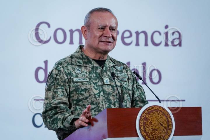 CIUDAD DE MÉXICO, 24JUNIO2025.- Arturo Coronel Flores, jefe del Estado Mayor de la Defensa Nacional, hizo uso de la palabra para explicar sobre los tipos de licencia que existe en las Fuerzas Armadas respecto a la propuesta de Ley por la que un integrante de las Fuerzas Armadas ocupe un cargo público, durante a conferencia matutina “Mañanera del Pueblo” en materia de Seguridad en Palacio Nacional. FOTO: GALO CAÑAS/CUARTOSCURO.COM