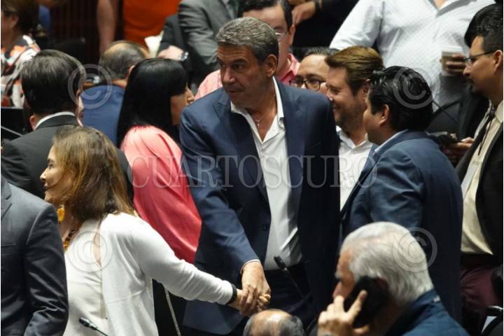 CIUDAD DE MÉXICO, 19MARZO2025.- La diputada Patricia Armendáriz tomo de la mano al empresario Arturo Elías Ayub durante la Sesión Ordinaria en la Cámara de Diputados. FOTO: GRACIELA LÓPEZ/CUARTOSCURO.COM