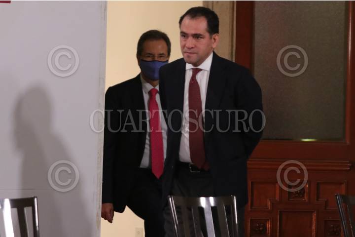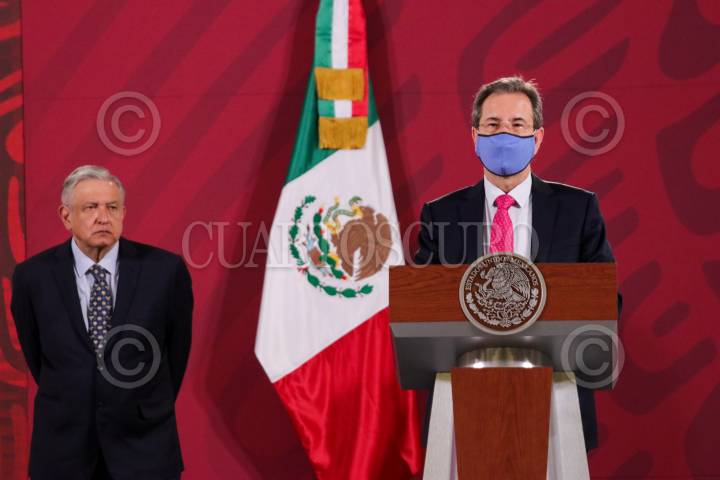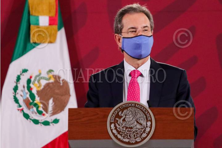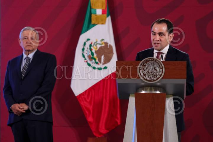 Arturo Herrera durante la conferencia matutina donde se firmo el acuerdo para la obtención de medicamentos con la UNOPS
