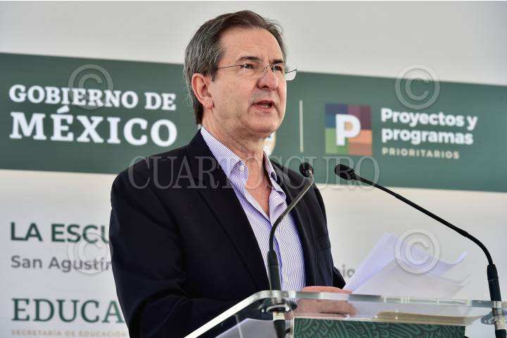 Estebán Moctezuma, titular de la SEP, durante elevento "La Escuela es Nuestra" en la escuela primaria Emiliano Zapata en San Agust´in Tlaxiaca, Hidalgo.