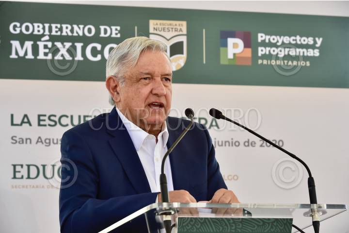 Andrés Manuel López Obrdor, presidente de México, durante elevento "La Escuela es Nuestra" en la escuela primaria Emiliano Zapata en San Agust´in Tlaxiaca, Hidalgo.