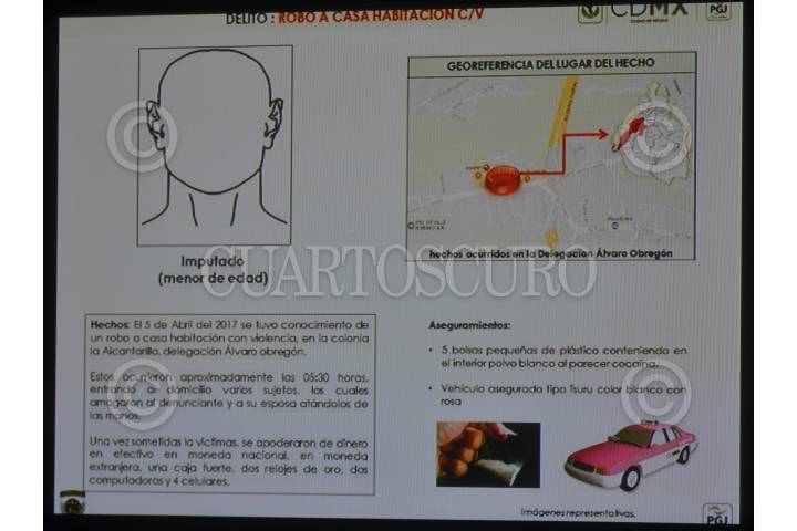 CIUDAD DE MÉXICO, 10ABRIL2017.- Derivado de las labores de campo y gabinete, realizadas por la Policía de Investigación (PDI), la Procuraduría General de Justicia capitalina (PGJ) informó que fue vinculado a proceso un menor de 17 años de edad, acusado del delito de robo en casa habitación con violencia, en agravio de un matrimonio que fue agredido por sus cómplices mientras se les desapoderaba de diversos objetos, como joyas y equipos de telefonía celular. Trascendió que el presunto esta implicado en el robo que sufrió hace unos días el actor Arturo Peniche en su casa. FOTO: ARMANDO MONROY /CUARTOSCURO.COM