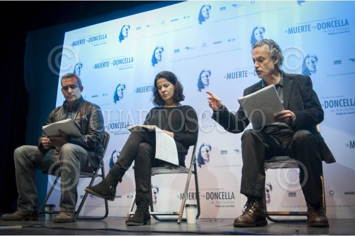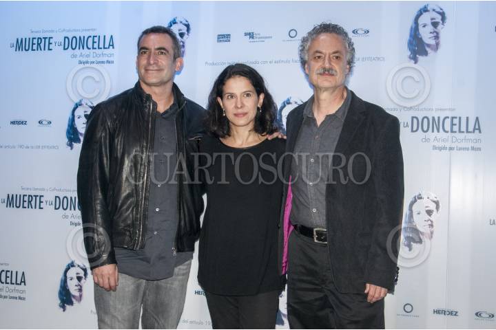 MÉXICO, D.F., 18JUNIO2015.- Los actores Daniel Martínez, Arcelia Ramírez y Arturo Ríos, presentaron la obra teatral "La Muerte y la Doncella", bajo la dirección de Lorena Maza, y que tendrá una temporada del 3 de julio al 30 de agosto en el Foro Shakespeare de la colonia Condesa. La historia de la obra cuenta los casos de tres personajes que fueron sometidos a una dictadura, basada en el caso del país chileno; es un dialogo en donde cada uno busca una verdad que los lleva a temas de violencia, secuetro, confianza, amor, y justicia. FOTO: DIEGO SIMÓN SÁNCHEZ /CUARTOSCURO.COM