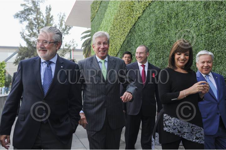 MÉXICO, D.F., 10JUNIO2015.- Mónica Aspe Bernal, subsecretaria de comunicaciones de la SCT; Yuriria Mascott Pérez, subsecretaria de transporte de la SCT; Gerardo Ruiz Esparza, titular de la Secretaría de Comunicaciones y Transportes, y Alfonso Sarabia de la Garza, director general de Aeropuertos y Servicios Auxiliares, encabezaron el evento en el cual se conmemoró el 50 aniversario de la Asociación de Aeropuertos y Servicios Auxiliares, organismo que opera y construye aeropuertos; presta servicios de suministro de combustibles, participa en el desarrollo tecnológico y colabora con la SCT en cuestiones de regulación, verificación y supervisión de aeropuertos. FOTO: DIEGO SIMÓN SÁNCHEZ /CUARTOSCURO.COM
