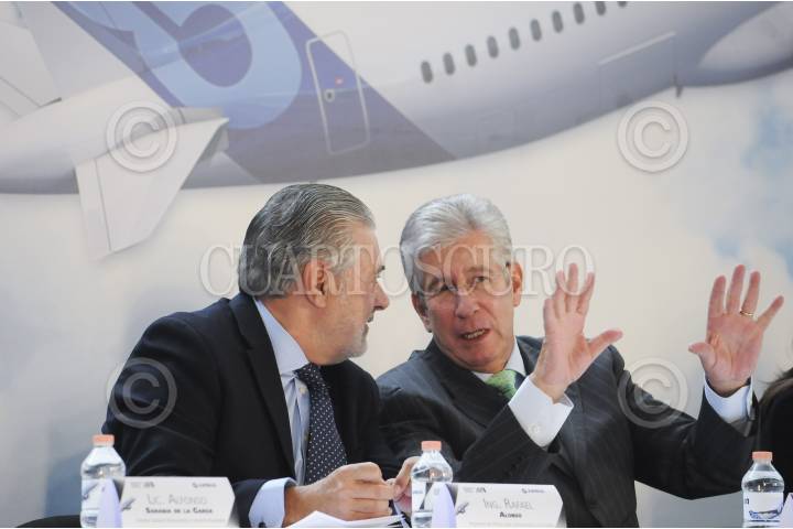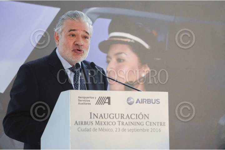 CIUDAD DE MÉXICO, 23SEPTIEMBRE2016.- Rafael Alonso, presidente de Airbus en Latinoamérica y Gerardo Ruiz Esparza, secretario de Comunicaciones y Transportes, durante la inauguración del centro de entrenamiento para pilotos de Airbus, ubicado en las instalaciones de ASA, y que capacitará a más de mil pilotos cada año. FOTO: DIEGO SIMÓN SÁNCHEZ /CUARTOSCURO.COM