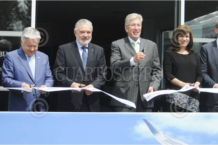 CIUDAD DE MÉXICO, 23SEPTIEMBRE2016.- Alfonso Sarabia de la Garza, director de Aeropuertos y Servicios Auxiliares (ASA); Rafael Alonso, presidente de Airbus en Latinoamérica; Gerardo Ruiz Esparza, secretario de Comunicaciones y Transportes, y Yuriria Mascott Pérez, subsecretaria de Transporte, encabezaron la inauguración del centro de entrenamiento para pilotos de Airbus, ubicado en las instalaciones de ASA, y que capacitará a más de mil pilotos cada año. FOTO: DIEGO SIMÓN SÁNCHEZ /CUARTOSCURO.COM