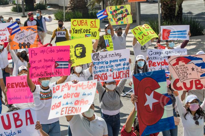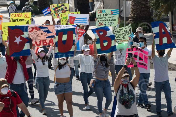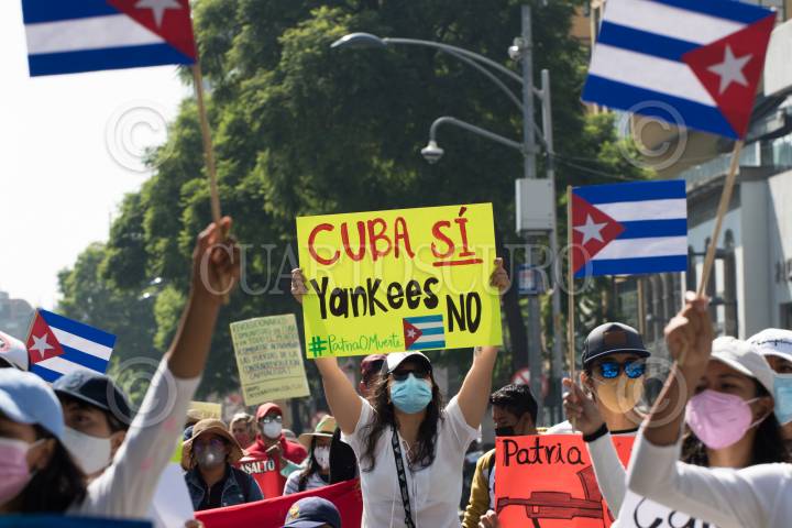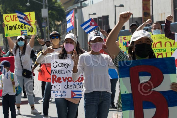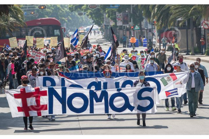 Cubanos avecindados en México y simpatizantes del régimen de aquel país marcharon para conmemorar el 68 Aniversario del Asalto al Cuartel Moncada.