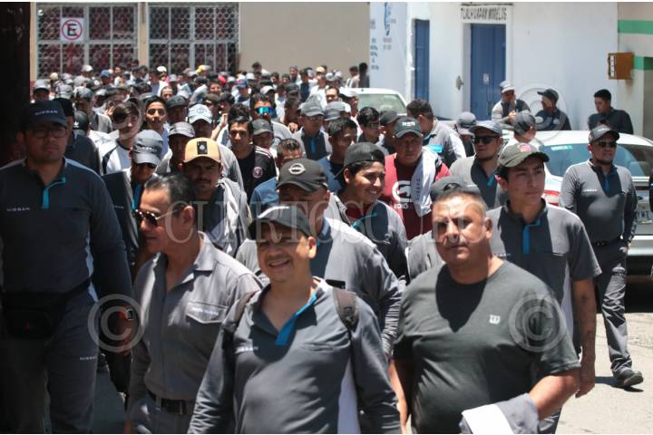 JIUTEPEC, MORELOS, 30JULIO2025.- Trabajadores de la planta de Nissan ubicada en Civac, salen de la sede del Sindicato Independiente luego de llevar a cabo una asamblea donde se trato el tema del cierre que anuncio la empresa para marzo del 2026. FOTO: MARGARITO PÉREZ RETANA/CUARTOSCURO.COM
