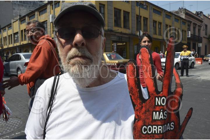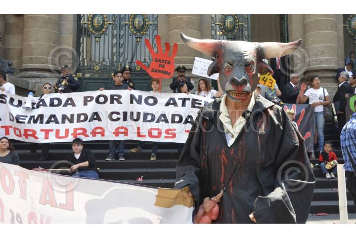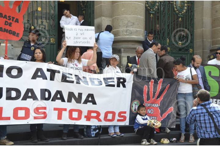 MÉXICO, D.F., 14ABRIL2015.- Ciudadanos protestaron contra las corridas de toros en las escalinatas de la Asamblea Legislativa del DF. FOTO: ARMANDO MONROY /CUARTOSCURO.COM