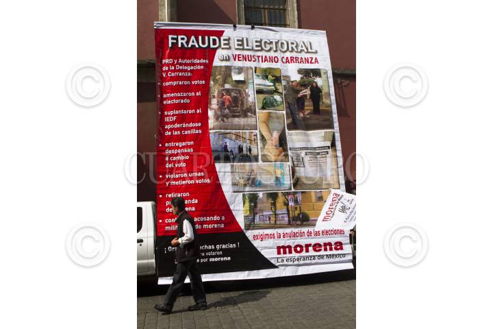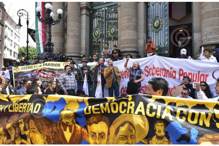 MÉXICO, D.F., 09JULIO2015.- Con la presencia de los diputados electos de Morena como; Gerardo Villanueva y Martí Batres, dirigente nacional de Morena, y decenas de simpatizantes de Morena, realizaron una protesta afuera de la Asamblea Legislativa del DF, para impedir el albazo en la designación de cargos que pretenden los diputados locales salientes, denunciaron. FOTO: MOISÉS PABLO /CUARTOSCURO.COM