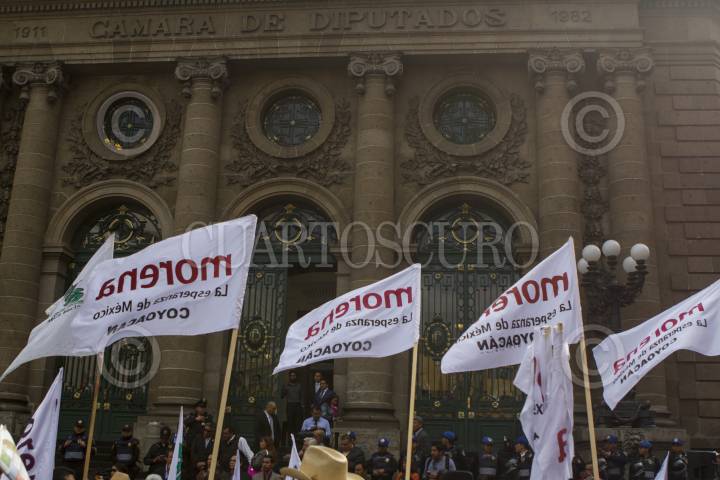 MÉXICO, D.F., 09JULIO2015.- Con la presencia de los diputados electos de Morena y decenas de simpatizantes de Morena, realizaron una protesta afuera de la Asamblea Legislativa del DF, para impedir el albazo en la designación de cargos que pretenden los diputados locales salientes, denunciaron. FOTO: MOISÉS PABLO /CUARTOSCURO.COM