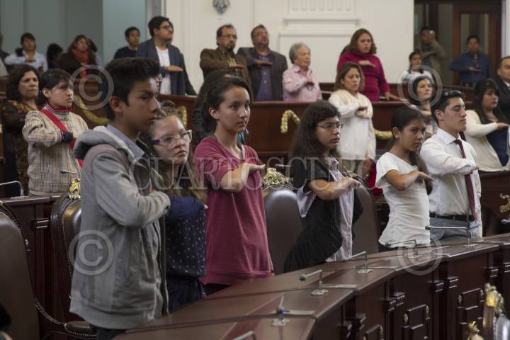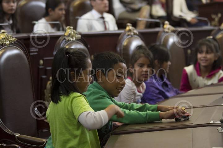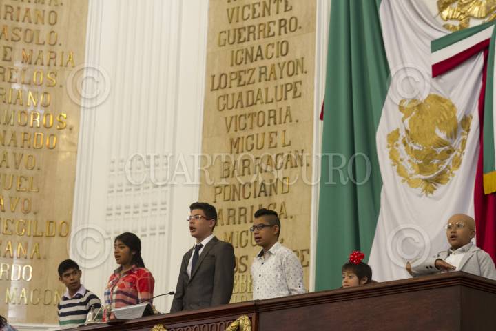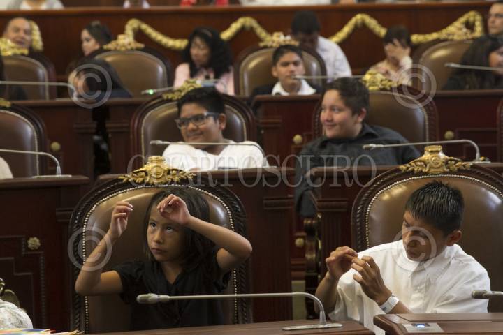 CIUDAD DE MÉXICO, 18JULIO2016.- Niños durante la instalación del Parlamento Incluyente Infantil y Adolescente en el pleno de la Asamblea Legislativa del DF, esta convocatoria la encabezó el diputado Luciano Jimeno Huanosta. FOTO: MOISÉS PABLO /CUARTOSCURO.COM