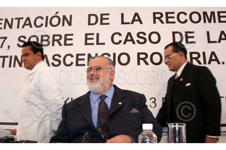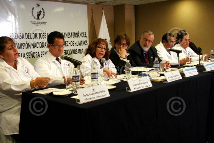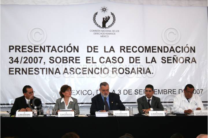 MEXÍCO. D.F. 03SEPTIEMBRE2007.-Hector Gutierrez Director General Adjunto,Susana Thalia Pedroza segunda visitante de la Comicion Nacional de Derechos Humanos José Luis Soberanes Presidente de la Comicion Nacional de los Derechos Humanos, Salvador Arias Director de la segunda Visita y Fernando Servantes, Medico Forense, dieron a conocer las recomendaciones sobre el caso de la señora Ernestina Ascencio Rosaria, recomendaciones en las cuales se pide entre otras cosas que se profesionalice la labor de los traductores que prestan auxilio a las diferentes agencias del Ministerio Público de la procuraduría estatal. FOTO: RICARDO CASTELAN/CUARTOSCURO.COM