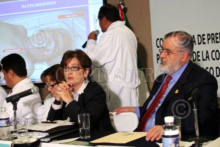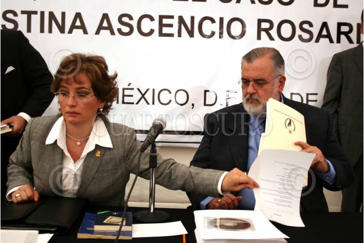 MÉXICO, D.F., 19ABRIL2007.- El presidente de la Comisión Nacional de Derechos Humanos, José Luis Soberanes, y la doctora Susana Thalia Pedroza, visitadora general, presentaron el informe sobre el caso de la muerte de la indígena Ernestina Ascencio, en el cual se concluye que no murió a causa de una violación. FOTO: ISAAC ESQUIVEL/CUARTOSCURO.COM