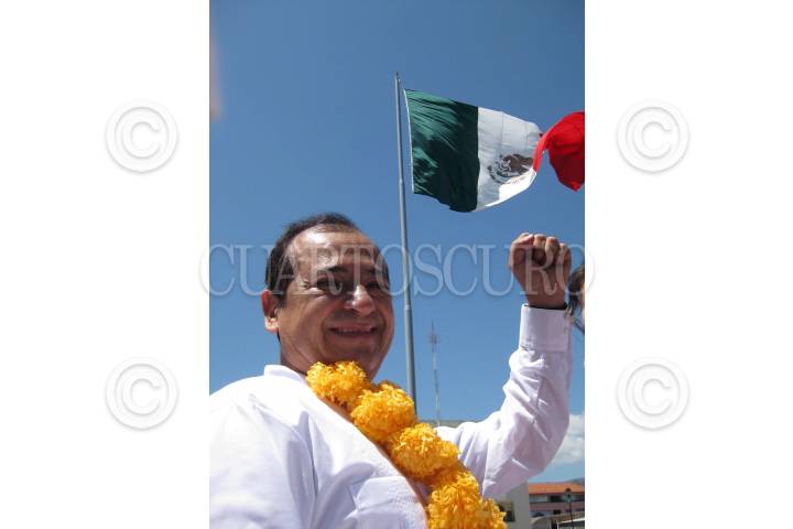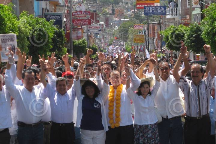 CHILPANCINGO, GUERRERO, 18MARZO2010.- Ascencio Villegas Arrizon, rector electo de la UAG por el período 2010-2014, encabezó una marcha-mitín para celebrar su vitoria en las elecciones de este instituto educativo. FOTO: OSCAR ALVARADO/CUARTOSCURO.COM