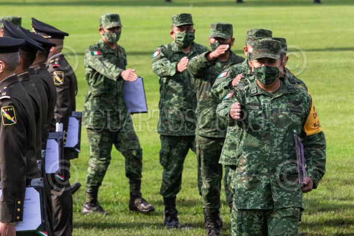 Elementos del Ejército Mexicano recibieron su ascensos en el Estadio de Fútbol Sedena.