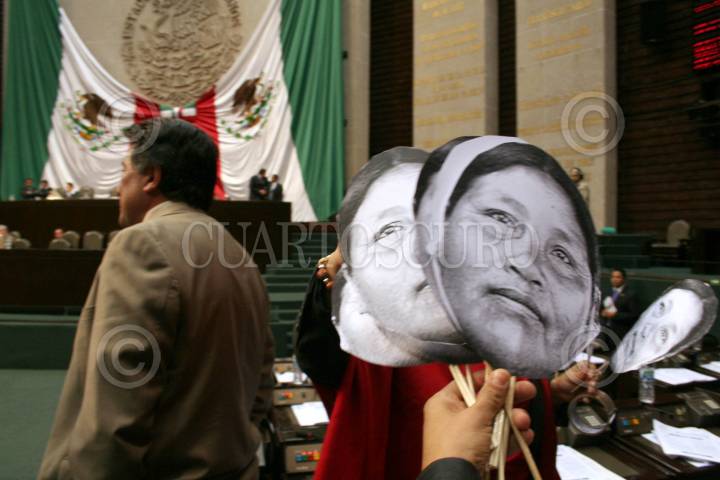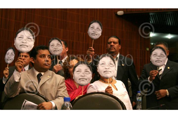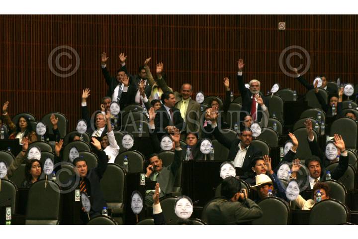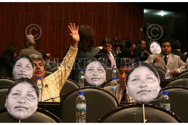 MÉXICO D.F. 10ABRIL2007.- Diputados perredistas se colocaron en la cara la foto de Ernestina Asencio, presuntamente violada popr militares en Veracruz. Los legisladores piden la comparecencia del presidente de la CNDH para aclarar el caso. FOTO: PAOLA HIDALGO/CUARTOSCURO.COM