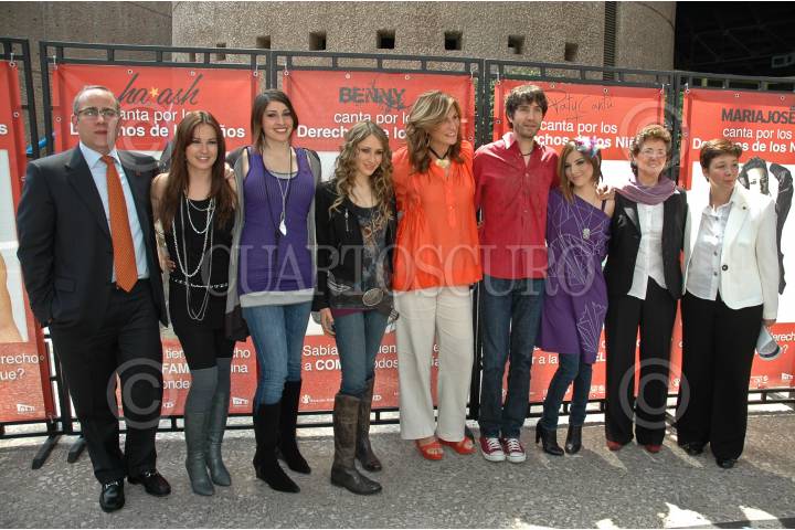 MÉXICO, D.F., 11MARZO2009.- Paty Cantú, María José, Roy Caple director ejecutivo de asuntos publicos de HSBC, Maripina Menendez directora de Save the Children México, Crisitina García, coordinadora del fideicomiso del Auditorio Nacional, Benny, y Ashley y Hanna del grupo Ha-Ash, durante la presentación del 1er Festival de la Música por los Derechos de los Niños. FOTO: RODOLFO ANGULO/CUARTOSCURO.COM