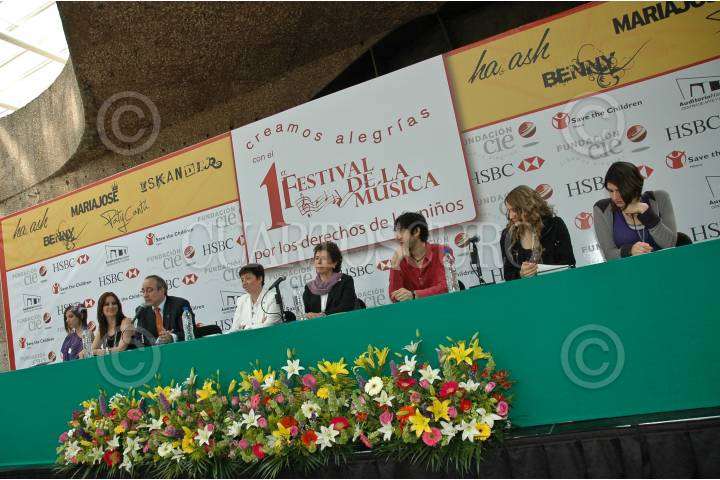 MÉXICO, D.F., 11MARZO2009.- Roy Caple director ejecutivo de asuntos publicos de HSBC, María José, Ashley y Hanna del grupo Ha-Ash, Guillermina Pilgram directora ejecutiva de "CIE", Benny, Paty Cantú, María Crisitina García, coordinadora del fideicomiso del Auditorio Nacional y Maripina Menendez directora de Save the Children México durante la presentación del 1er Festival de la Música por los Derechos de los Niños. FOTO: RODOLFO ANGULO/CUARTOSCURO.COM